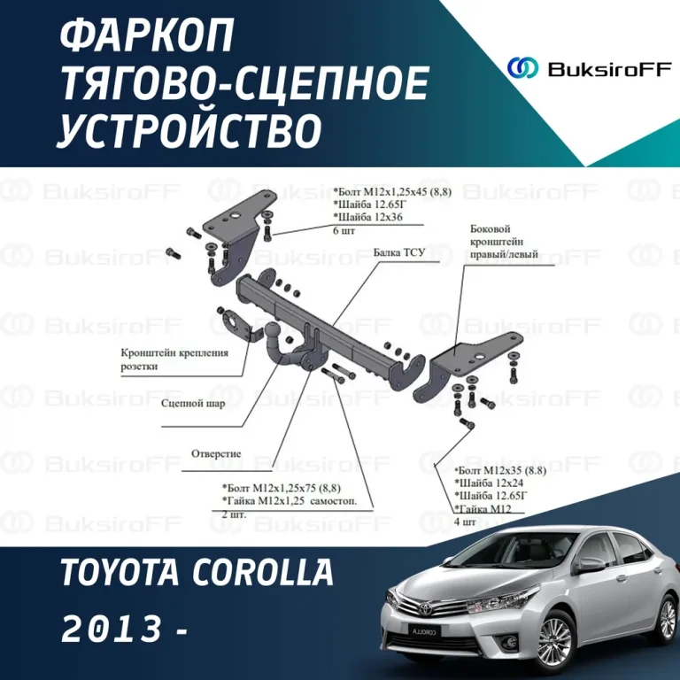 Фаркоп для Toyota Corolla (Тойота Королла) E140. E150. E160. E170 2006-2019