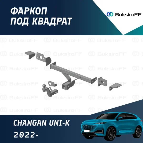 Фаркоп Трейлер на Changan UNI-K (2020 по наст.), качественное и надёжное тягово-сцепное устройство, которое имеет съемный под квадрат крюк, тяговую нагрузку 750 кг., и вертикальную нагрузку 50 кг. Изготовлен фаркоп из толстостенного металла и отличается от аналогов повышенными характеристиками материалов.