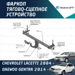 Фаркоп Трейлер на Chevrolet Lacetti J200 (2004-2013), качественное и надёжное тягово-сцепное устройство, которое имеет условно-съемный на 2 болтах крюк, тяговую нагрузку 1200 кг., и вертикальную нагрузку 60 кг. Изготовлен фаркоп из толстостенного металла и отличается от аналогов повышенными характеристиками материалов.