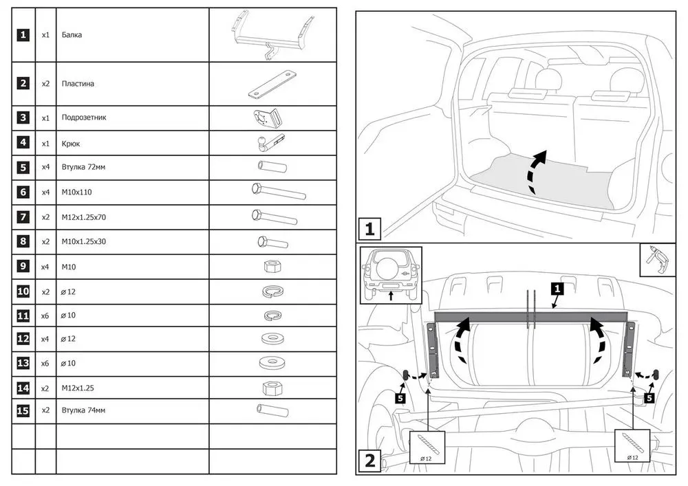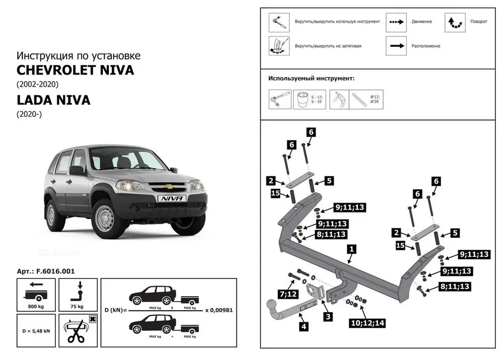 Фаркоп Berg (условно-съемный на 2 болтах, арт. F.6016.001). Изделие обеспечивает повышенную надёжность при тяговой нагрузке до 800 кг и вертикальной — 75 кг.
