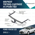 При установке фаркопа 6013 на Ford Focus MK III (2011-2018) вырез бампера не требуется и в комплект фаркопа не входит электрика. За подробной консультацией вы можете обратиться к нашему менеджеру или написать в чат.