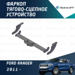 Фаркоп Трейлер на Ford Ranger T6 (2011-2022), качественное и надёжное тягово-сцепное устройство, которое имеет фланцевый на 2 болтах крюк, тяговую нагрузку 1500 кг., и вертикальную нагрузку 75 кг. Изготовлен фаркоп из толстостенного металла и отличается от аналогов повышенными характеристиками материалов.