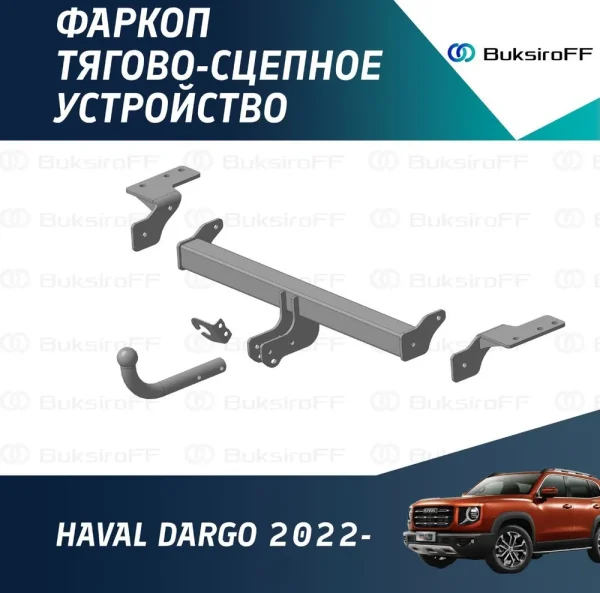 Фаркоп Трейлер на Haval Dargo (2022 по наст.), качественное и надёжное тягово-сцепное устройство, которое имеет условно-съемный на 2 болтах крюк, тяговую нагрузку 1500 кг., и вертикальную нагрузку 60 кг. Изготовлен фаркоп из толстостенного металла и отличается от аналогов повышенными характеристиками материалов.