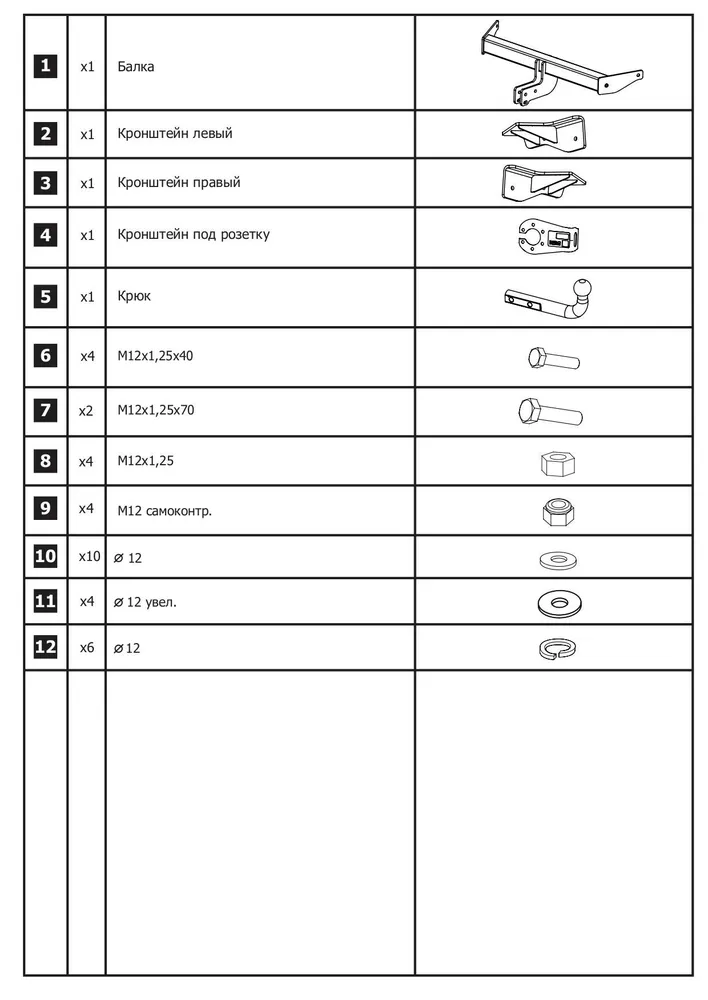 – Монтажный комплект (метизы) – 1 комл.