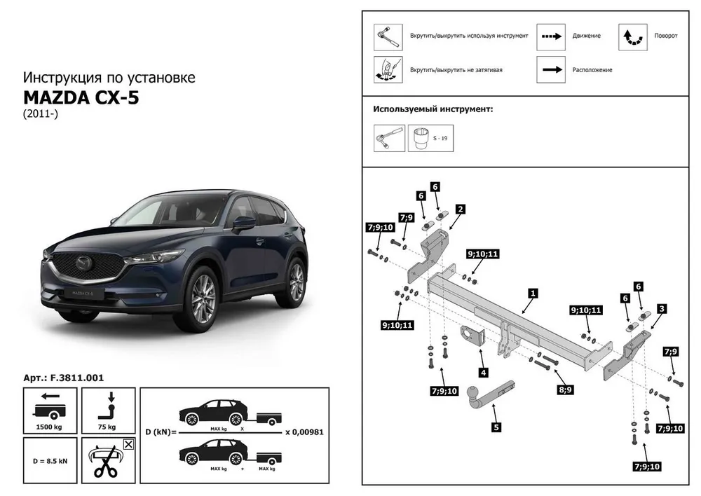 Фаркоп для Mazda CX-5 I. II c 2011 разборный