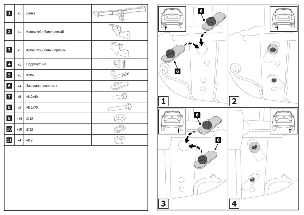 Фаркоп Berg (условно-съемный на 2 болтах, арт. F.3811.001). Изделие обеспечивает повышенную надёжность при тяговой нагрузке до 1500 кг и вертикальной — 75 кг.