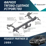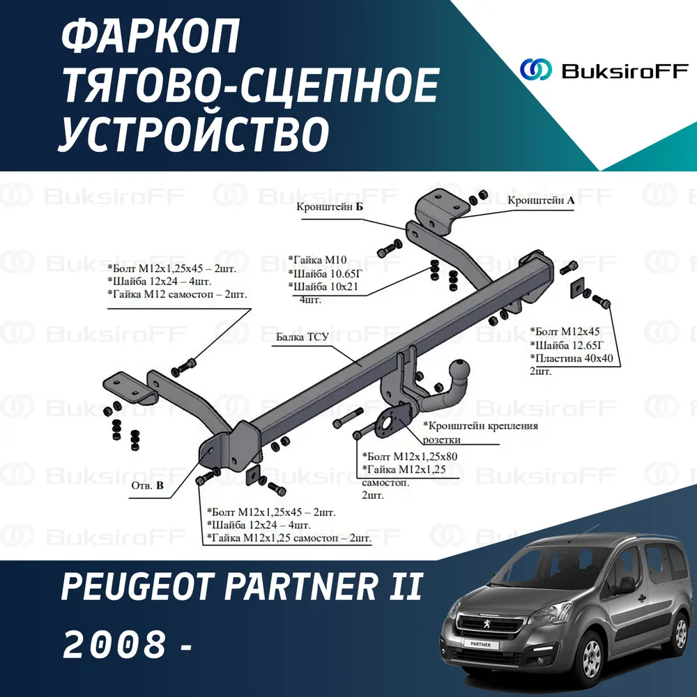 Фаркоп Трейлер на Citroen Berlingo B9 (2008 по наст.), качественное и надёжное тягово-сцепное устройство, которое имеет условно-съемный на 2 болтах крюк, тяговую нагрузку 1200 кг., и вертикальную нагрузку 60 кг. Изготовлен фаркоп из толстостенного металла и отличается от аналогов повышенными характеристиками материалов.