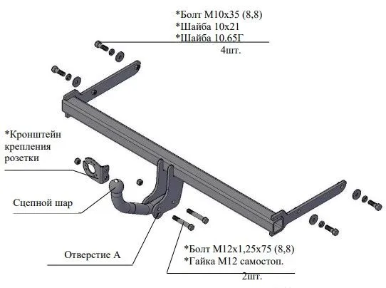 Данный фаркоп, качественное и надёжное тягово-сцепное устройство, которое имеет условно-съемный на 2 болтах крюк, тяговую нагрузку 1000 кг., и вертикальную нагрузку 50 кг. Изготовлен фаркоп из толстостенного металла и отличается от аналогов повышенными характеристиками материалов.