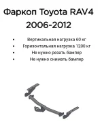 Фаркоп Трейлер на Toyota RAV4 XA30 (2005-2013), качественное и надёжное тягово-сцепное устройство, которое имеет съемный под квадрат крюк, тяговую нагрузку 1300 кг., и вертикальную нагрузку 60 кг. Изготовлен фаркоп из толстостенного металла и отличается от аналогов повышенными характеристиками материалов.