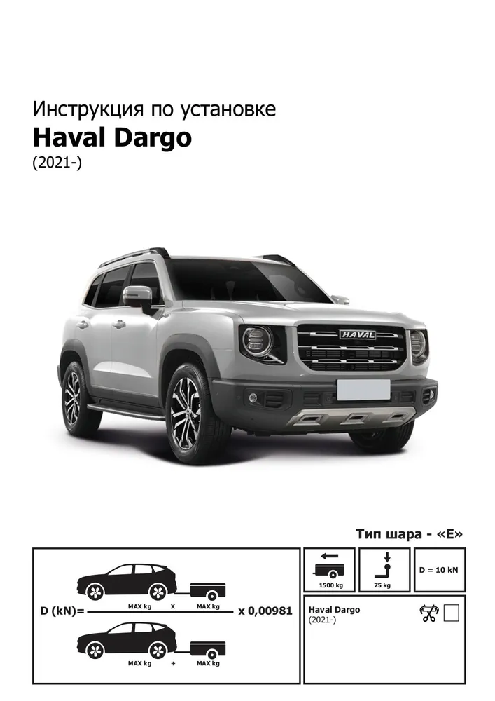 Фаркоп Berg (съемный под квадрат, арт. F.9413.002) специально разработан для модели Haval Dargo (2022 по наст.) (Хавал Дарго ). Изделие обеспечивает повышенную надёжность при тяговой нагрузке до 2000 кг и вертикальной — 75 кг.
