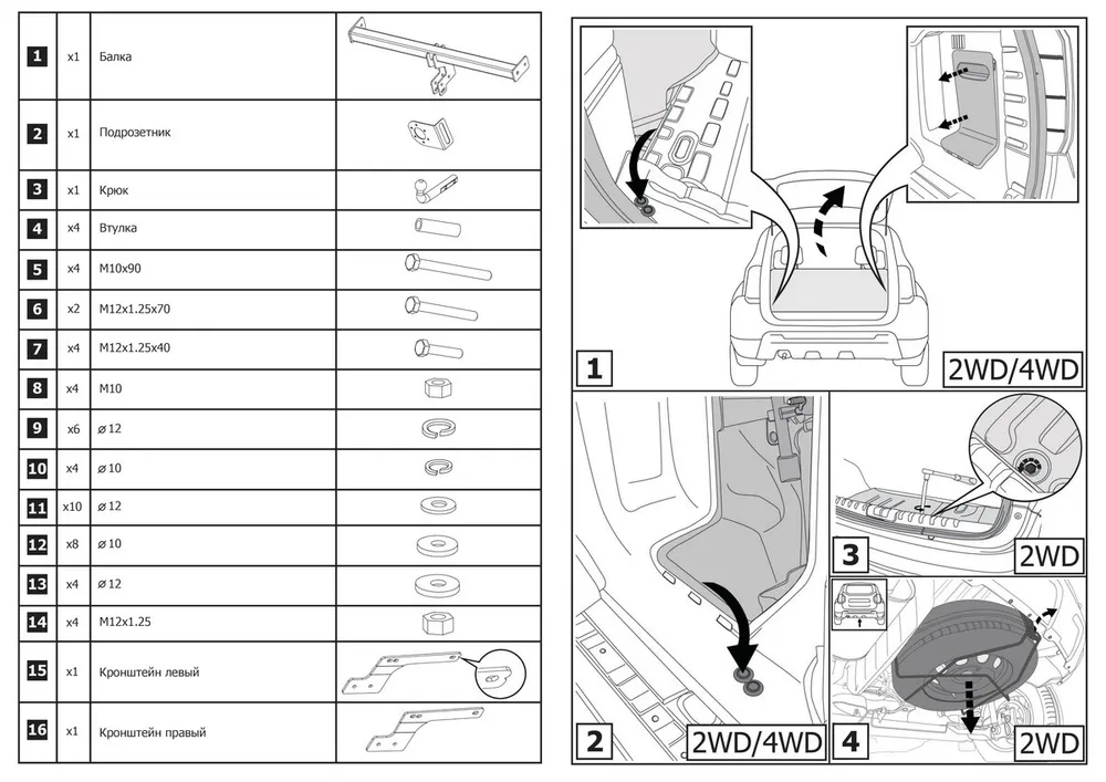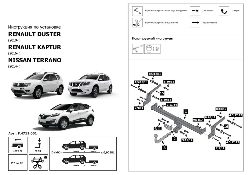 Фаркоп разборный для Renault Duster 2010-2021 2021-н.в./Kaptur 2016-