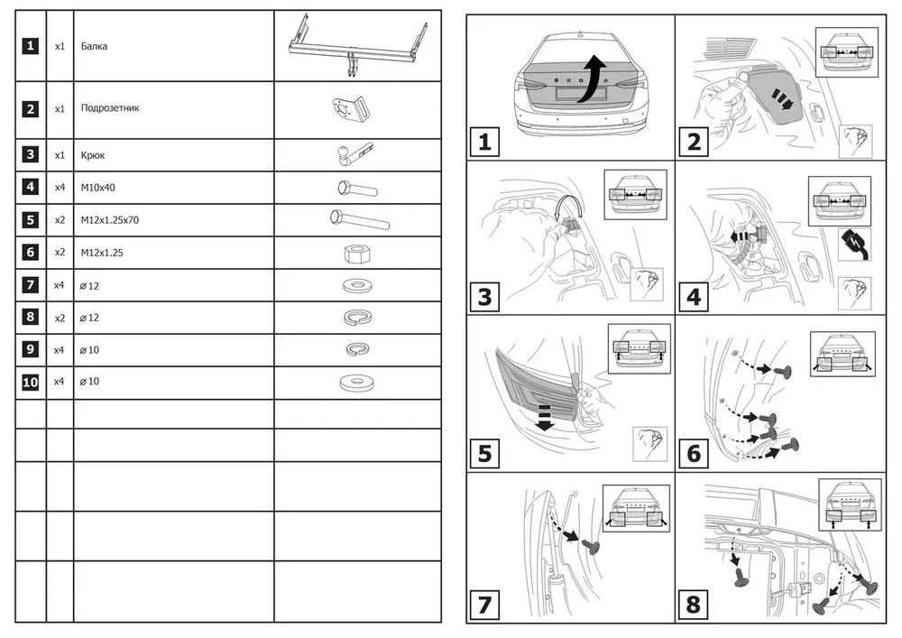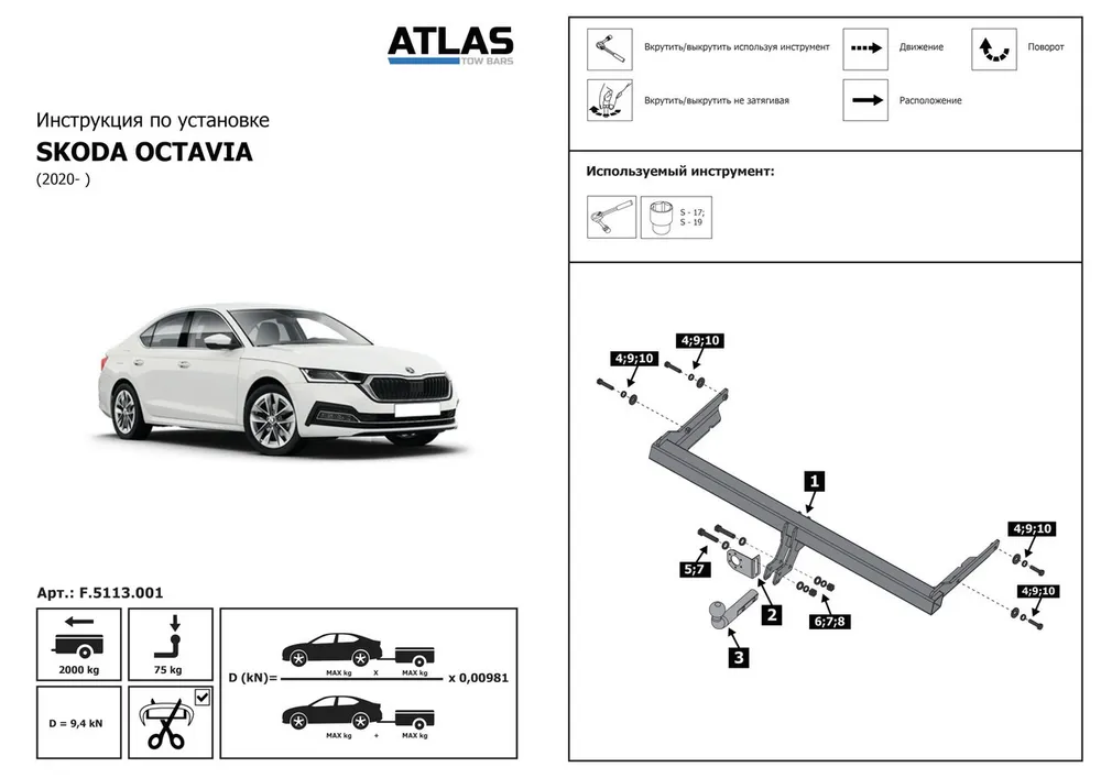 Фаркоп Berg (условно-съемный на 2 болтах, арт. F.5113.001) специально разработан для модели Skoda Octavia A8 (2020 по наст.) (Шкоду Октавия ). Изделие обеспечивает повышенную надёжность при тяговой нагрузке до 2000 кг и вертикальной — 75 кг.