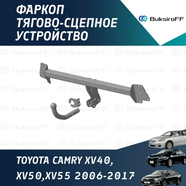 Фаркоп Трейлер для Toyota Camry (XV40, XV50,XV55) с 2006 по 2017 г.в. качественное и надёжное тягово-сцепное устройство, которое имеет условно-съемный на 2 болтах крюк, тяговую нагрузку 1500 кг., и вертикальную нагрузку 50 кг. Изготовлен фаркоп из толстостенного металла и отличается от аналогов повышенными характеристиками материалов.