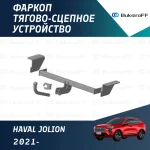 Фаркоп Трейлер на Haval Jolion (2021 по наст.), качественное и надёжное тягово-сцепное устройство, которое имеет условно-съемный на 2 болтах крюк, тяговую нагрузку 1500 кг., и вертикальную нагрузку 60 кг. Изготовлен фаркоп из толстостенного металла и отличается от аналогов повышенными характеристиками материалов.