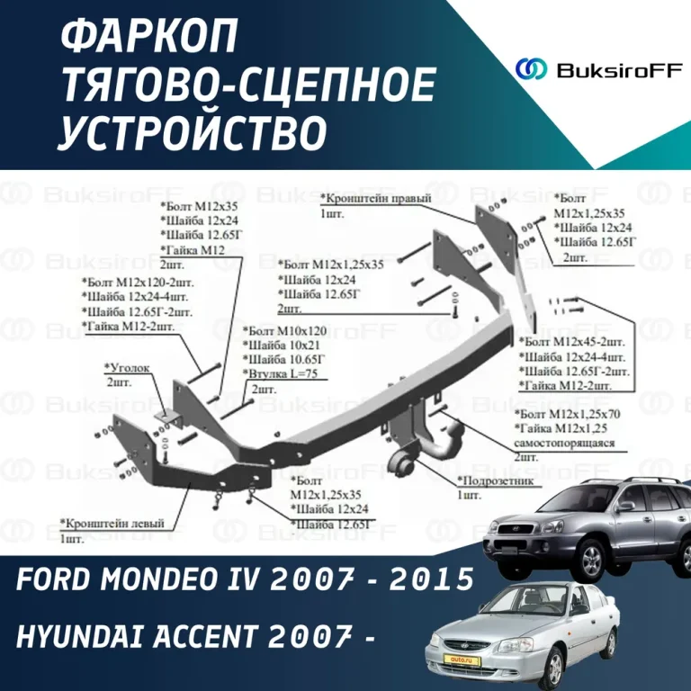 Фаркоп для Hyundai Solaris (Хендай Солярис) I поколение 2010-2017/Kia Rio (Киа Рио) III поколение 2011-2017